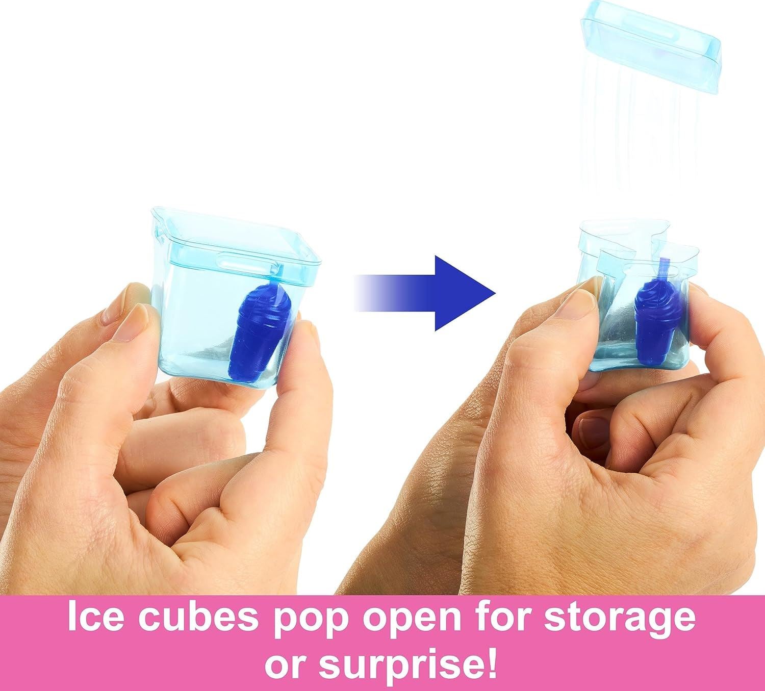 Barbie® Pop Reveal™ dolls offer an unboxing experience filled with eight sensory surprises! Unwrap the drink cup-inspired packaging to find the Grape Fizz flavour in the Fruit Series. Open the lid and remove the surprise bags, then pop the top and watch colorful Slime™ drip down over the ice cubes that hold accessories inside. Kids can take the squishy Slime™ out for fun, sensory play. Next, pop the ice cubes to find roller skates and a squishy mini-drink piece. The ice cubes are reusable -- repeat the pop reveal fun again and again! Kids keep unboxing to find a fruit-scented fashion doll, a squishy and scented pet, fashion piece and accessories. Each Pop Reveal Barbie™ doll is posable with color-change hair and makeup. Kids will want to collect them all!